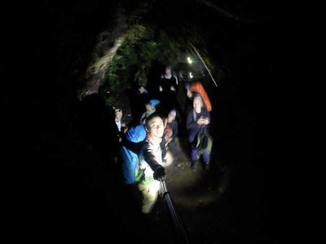 Sementara yang lainnya heboh mengeringkan badan dan menatap nanar nasib kami yang harus mendaki malam hari. Iya, gua pernah bilang di Mendaki Siang Vs Mendaki Malam, kalau sebaiknya gak mendaki malam hari. Tapi, kondisi kali ini mau gak mau membuat kami tetap mendaki malam hari.
