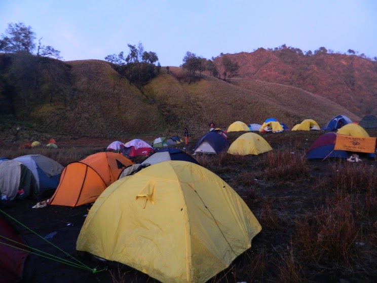 Puas dorong-dorongan dan ngegelindingin sebagian peserta pendakian massal itu yang menuh-menuhin jalanan, akhirnya gue, Adhityo, dan Wendy sampai juga di Ranu Kumbolo yang lagi dingin-dinginnya itu. Udah dingin, rusuh pun. Banyak pendaki yang bangun tenda, talinya kemana-mana, gue sempet keserimpet dan jatuh gelinding-gelinding.